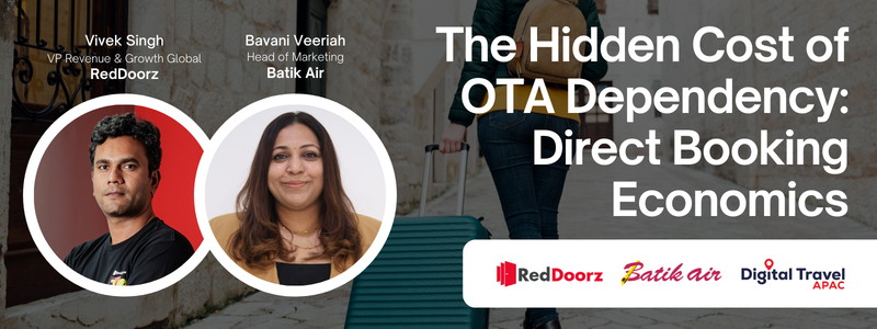 OTA commissions are only the visible cost of intermediary distribution. Vivek Singh, VP Revenue & Growth Global at RedDoorz, and Bavani Veeriah, Head of Marketing at Batik Air, explain how OTA dependency erodes ancillary revenue, customer data, and lifetime value — and what travel brands can do to rebalance toward direct bookings.